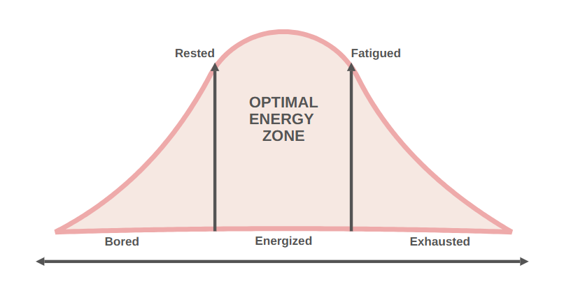 If you decide to white-knuckle your way through all of your low-mental-energy dips, throughout the day, your energy and focus will eventually crawl out of the valleys, yes, and return to somewhat higher levels of functioning, but your performance will never be able to reach as high a peak as before (as you were able to reach earlier in the day). And if you continue on like this, skipping way too many breaks along the way, throughout the day, by mid-afternoon you will end up in a slump, unable to function properly, unable to think straight, groggy, and moody. And that’s not what I want for you!!! Rather, what I want for you is for you to be able to stay as much as possible in your OPTIMAL ENERGY ZONE!!! Throughout all the minutes of all your days…